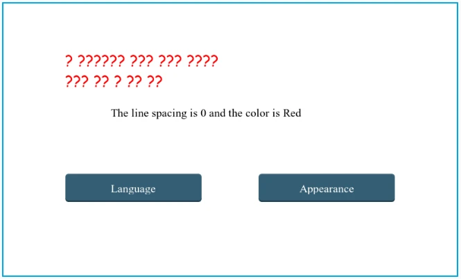 For this tutorial, we are going to use a simple screen which will display some text. To switch between languages, we are going to use a button widget. We will also need another button to “play” with the text itself: change the content, the color, the line spacing and the indentation.