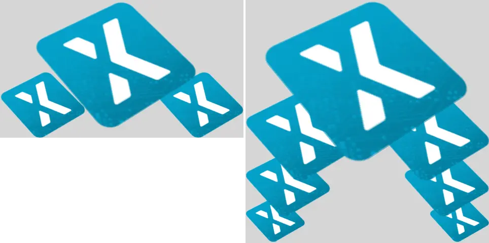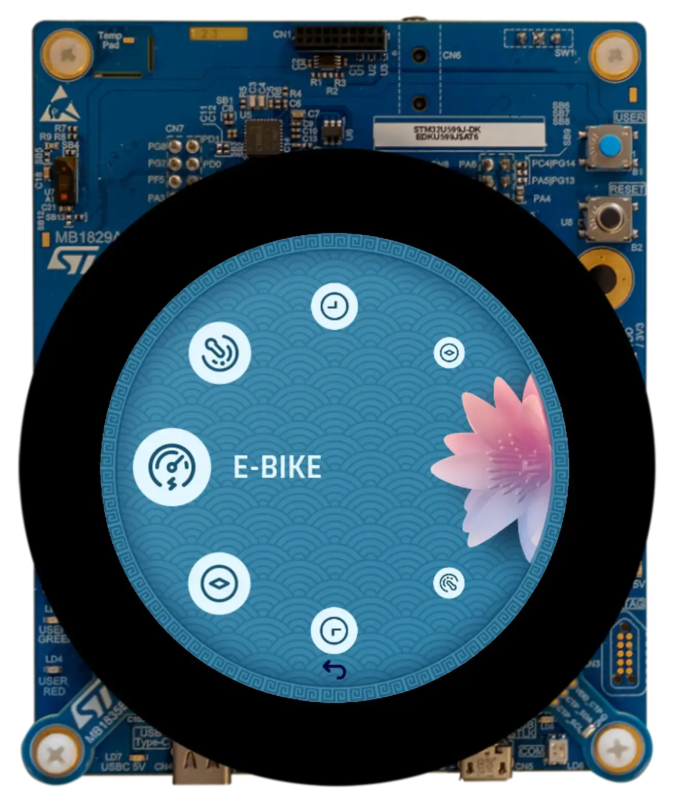 The following figure shows two applications running on respectively the STM32F746 and the STM32U5A9. The idea is to make a carousel-like menu where elements are scaled up when going to the center and scaled down when going out (here we just use the same texture for all the elements).