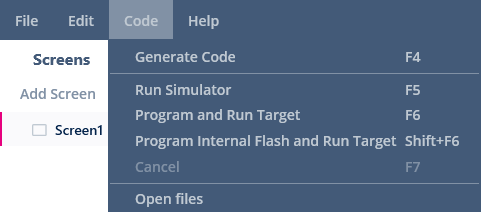 Clicking the Generate Code button will start code generation of the current project. This button may be grayed out if there are other generation or compilation steps running.