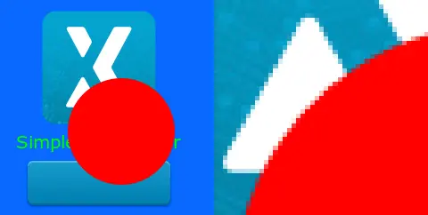 The RedPainter class above ignores the alpha parameter. This makes the edges harsh (no alpha-blending) as all pixels are made fully red. We can improve this with a slight code update where we use the alpha parameter to do blending if needed: