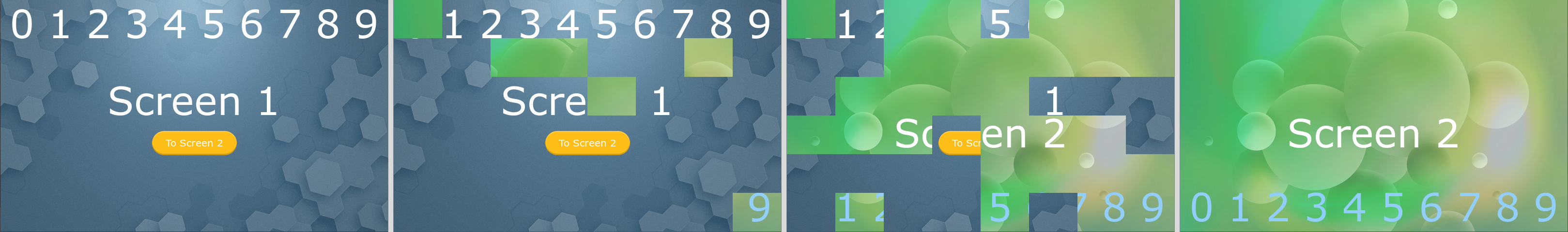 Block Transition. Start screen on the left, Screens transitioning in the middle. End Screen on the right.