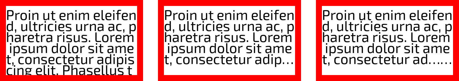 If your width and/or height is too small to fit the text, the text will be clipped to the area as can be seen below.