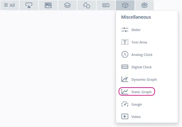 The Static Graph can be found in the Miscellaneous widget group in TouchGFX Designer.