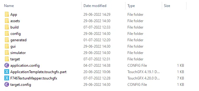 ApplicationTemplate.touchgfx.part | Various information about the project. Generated by STM32CubeMX and read by TouchGFX Designer. | Yes |