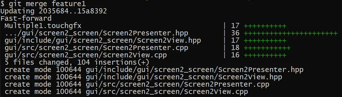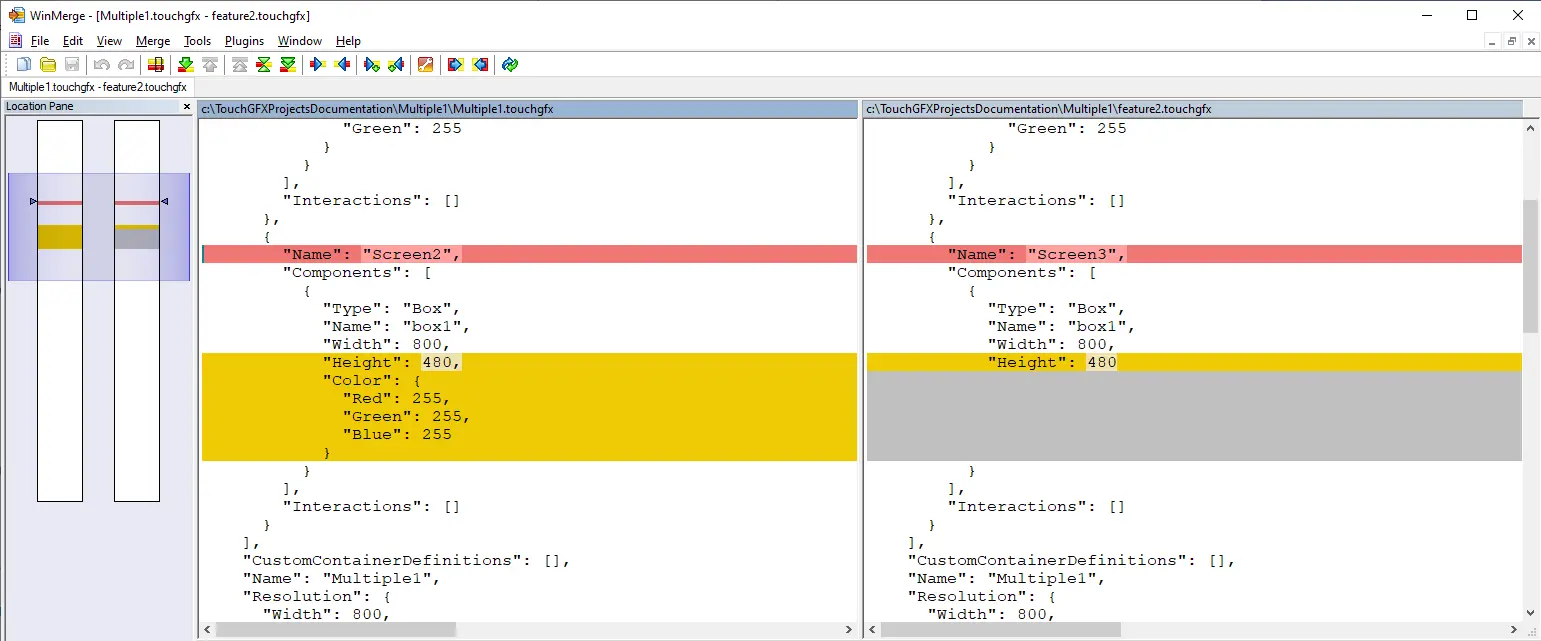 Conflicts can also arise in the .touchgfx file where the TouchGFX Designer saves the UI design. This file is in JSON format and can also be merged using standard tools.