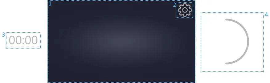 2つ目のスクリーンのScreen2には動作中のクロックが配置され、Screen1に保存された値から開始されます。 このクロック以外に、Screen2の構成要素には、クロックの周囲でアニメーション化されたサークルも含まれています。これはクロックが動作中であることを示します。 最後に、Screen1に戻るためのボタンがあり、これによってスクリーンがScreen1に変更されます。