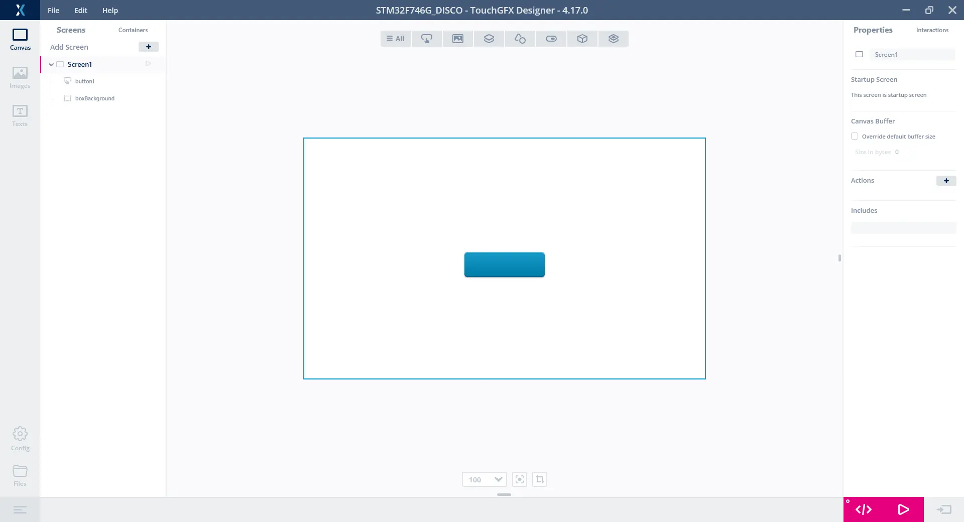 最初に、TouchGFX Designerで、STM32F746Discovery評価キット用の空のプロジェクトを作成します。