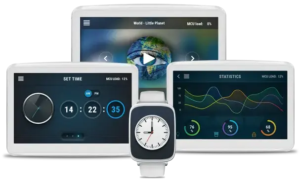 一部のアプリケーションでは、非常に近づいてディスプレイを見ないと違いがわからない場合があります。 ピクセル密度の例としては、STM32F476DISCOで16,462 PPI2、STM32F769DISCOで54,400 PPI2が挙げられます。