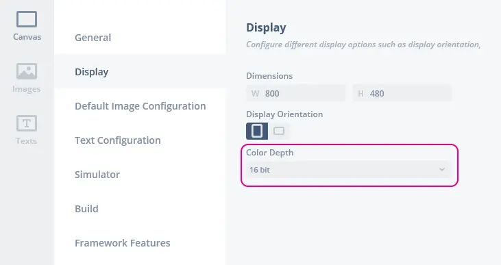 Once the TouchGFX project has been updated based on the new TouchGFX Generator settings defined in STM32CubeMX, developers will find that TouchGFX Designer configuration has changed to match.