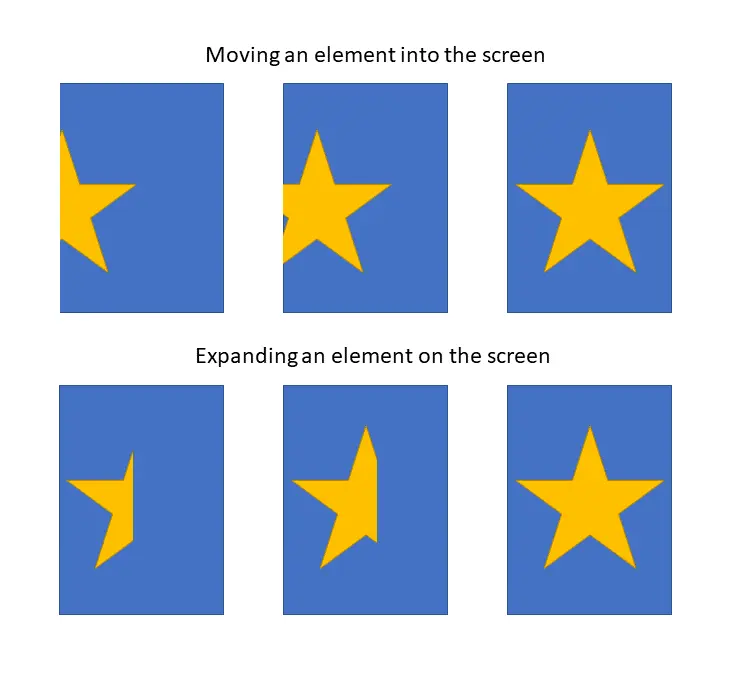 星を右側に移動する場合は、その星によってカバーされているすべてのピクセルを更新する必要があります。 星を展開する場合には、新しいピクセルのみを更新する必要があります。 前のフレームで更新されたピクセルは変更されずにそのまま残ります。