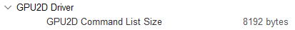 [GPU2D Command List Size]を設定すると、GPU2Dで使用されるコマンド・リストのサイズがバイト単位で設定されます。