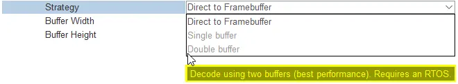 - Single Buffer - ビデオは1つの専用バッファを使用し、1つの専用タスクでデコードされます。 このバッファは内部メモリに割り当てられます。
