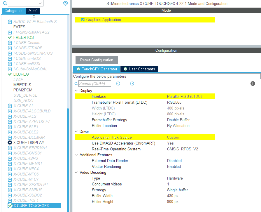 をParallel RGB(LTDC)に設定(これはアプリケーションが通信する必要があるコントローラであるため)Application Tick Source
