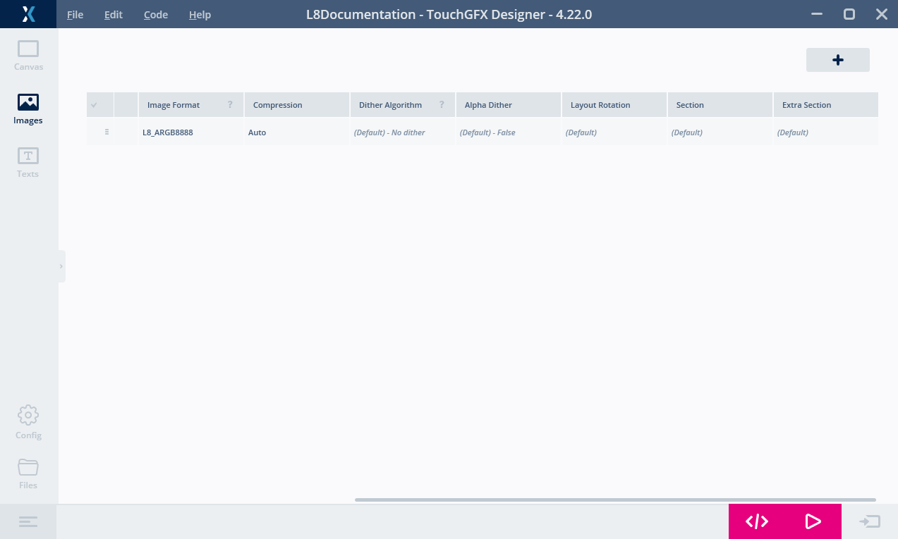 TouchGFX DesignerでRGB565、RGB888、またはARGB8888画像を圧縮する場合は、L8圧縮の場合と同じプロセスに従います。