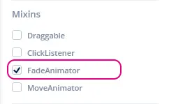 Fade Animatorミックスインは、ゼロより大きい時間をかけてウィジェットを減衰させるインタラクションが追加されると、そのウィジェットに自動的に適用されます。