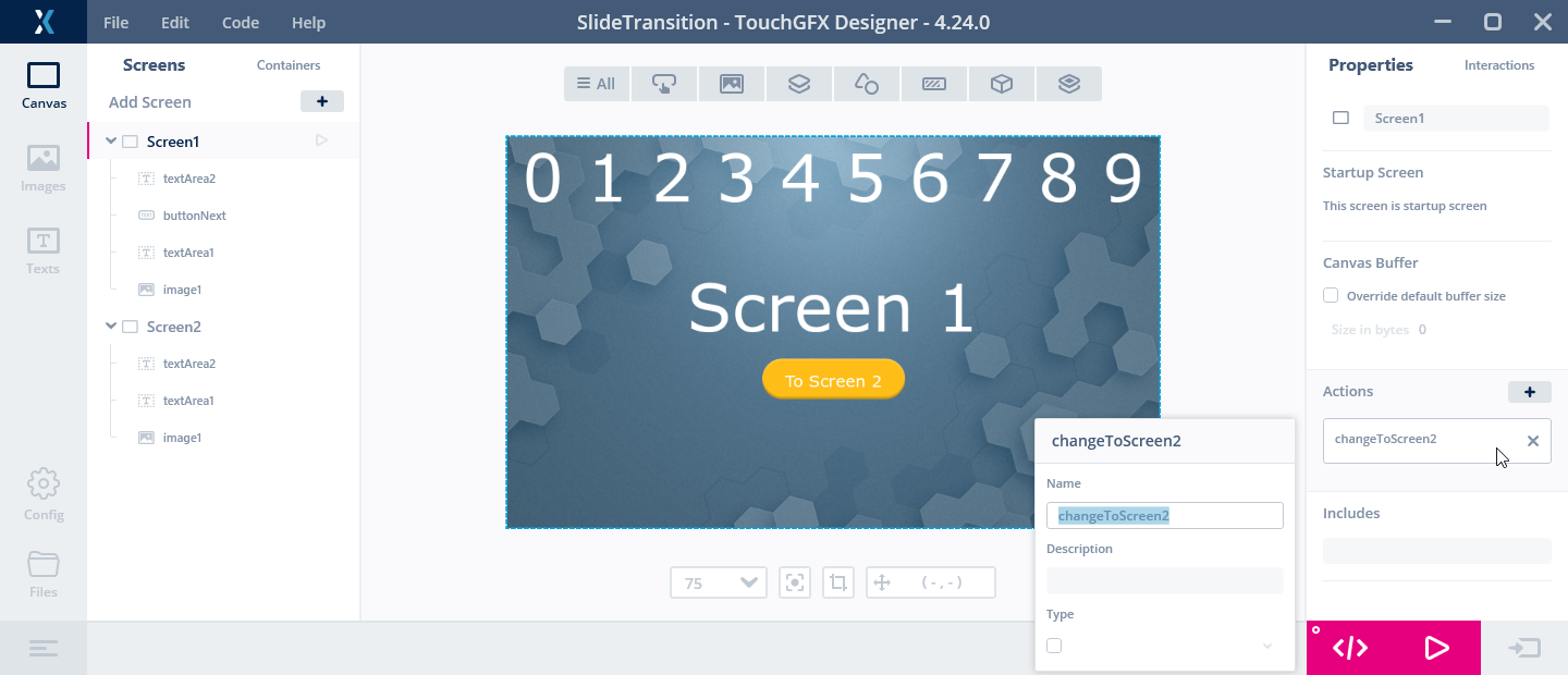 Setting up a Screen Transition in TouchGFX Designer