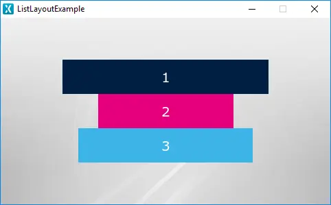 List LayoutウィジェットはContainerであり、その子を指定された方向のリストに自動的に整列させます。 List Layoutにウィジェットを追加 / 削除すると、子が再整列されます。