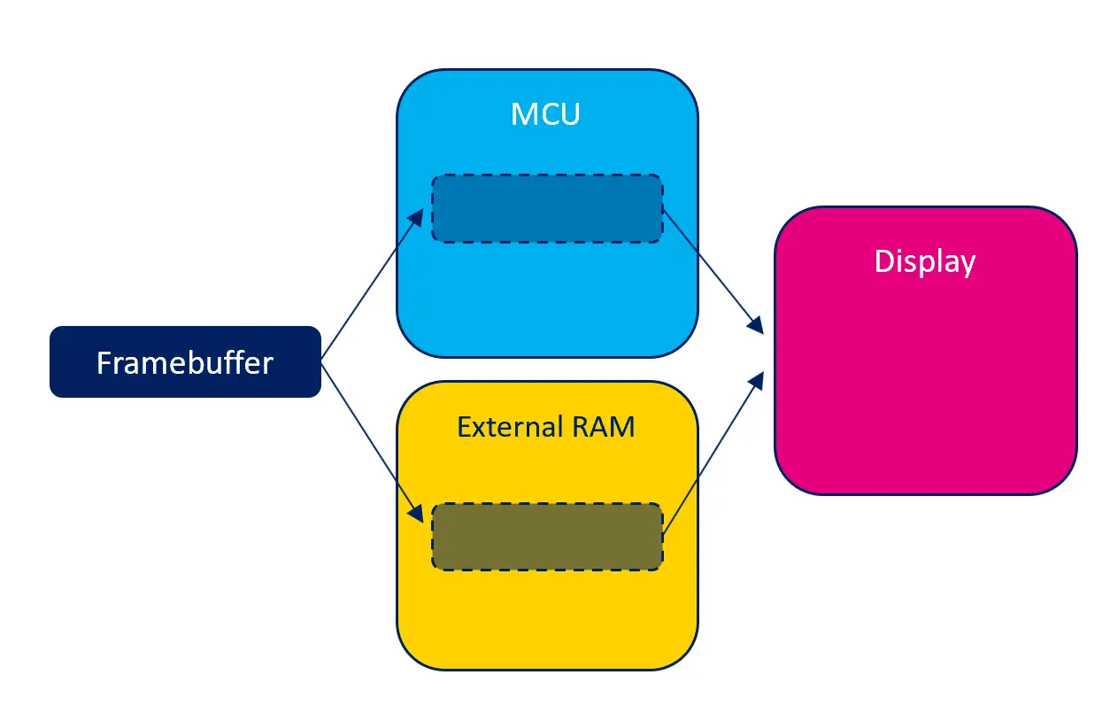 프레임버퍼는 MCU 내부 또는 외부 RAM에 저장됩니다.