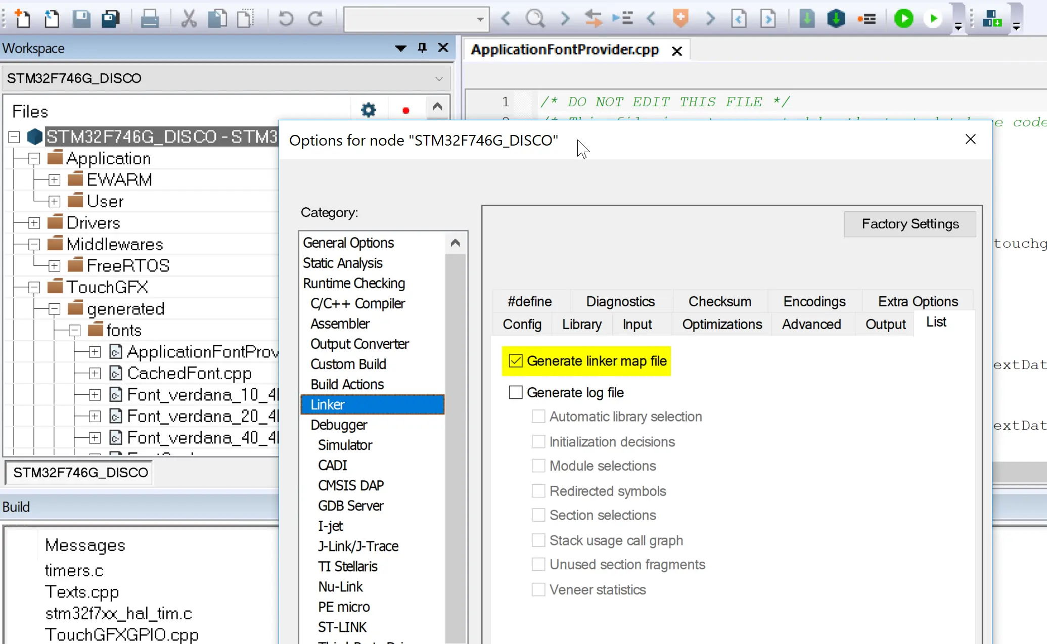 IAR에서 해당 프로젝트를 열고 IAR이 .MAP 파일을 생성하는 속성을 체크합니다.