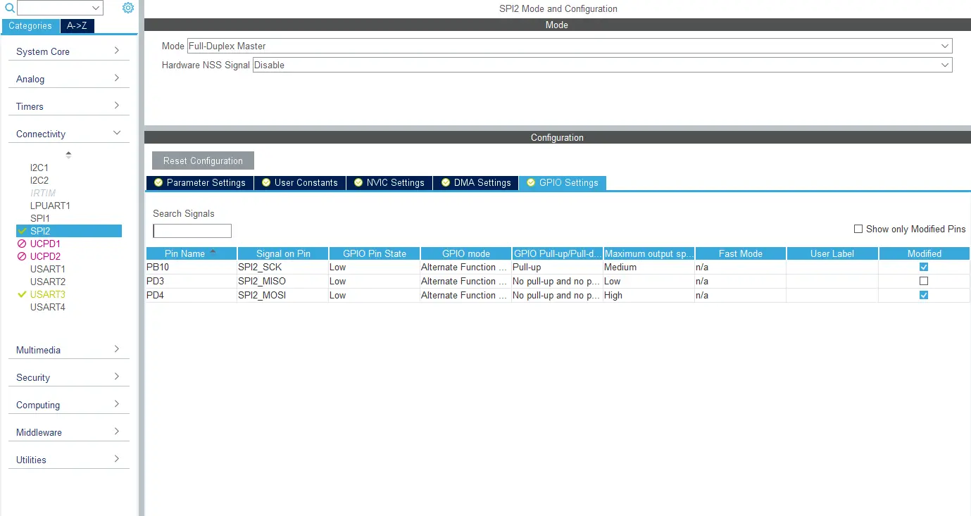 STM32CubeMX를 시작하고 SPI를 활성화합니다. 아래 그림은 STM32G081 프로젝트의 예입니다.