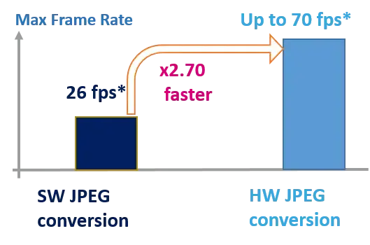 Some STM32 families provide a hardware JPEG codec to encode and decode images and videos.