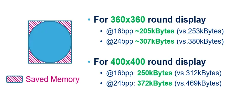 원형 디스플레이의 경우 Chrom-GRC™는 메모리 요구 사항을 20%까지 줄여줍니다.