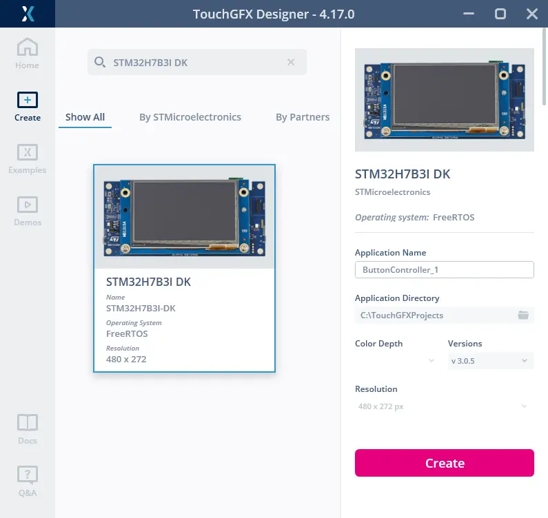 STM32H7B3I-DK TouchGFX 보드 설정을 기반으로 새 애플리케이션을 시작합니다. 이에 따라 사용자 버튼이 GPIO 포트 C핀 13(PC13)에 연결됩니다.