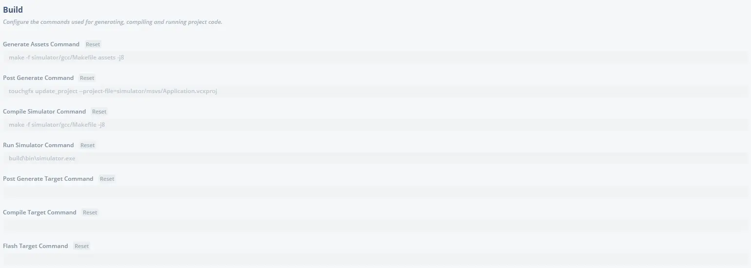 This command is usually set up to generate text and image assets, and is executed after TouchGFX Designer has generated the code.