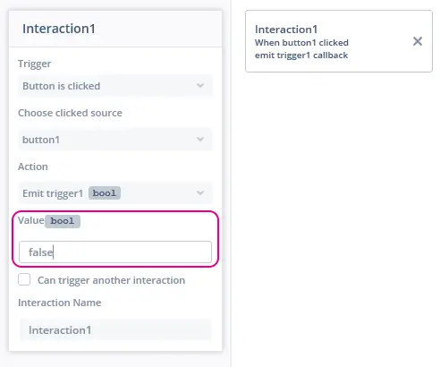 상호작용에서 트리거로 선택할 때 커스텀 트리거의 이름을 지정하는 규칙은 다음과 같습니다. <Custom Container Name> <Custom Trigger name> happens