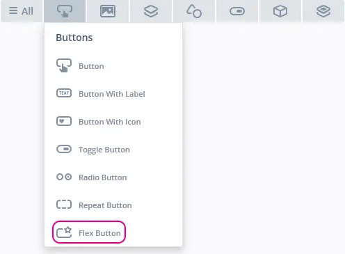 Flex Button은 TouchGFX Designer의 Buttons 위젯 그룹에 있습니다.