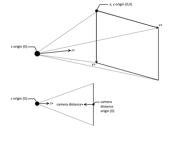 좌표 속성인 Z Origo는 Camera Distance 속성 값과 관련이 있습니다. 예를 들어 Camera Distance 속성 값이 1000으로 설정되면 Z Origo 역시 1000으로 설정되는 축을 중심으로 이미지가 회전합니다.