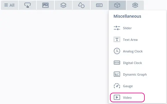 Video는 TouchGFX Designer의 Miscellaneous 위젯 그룹에 있습니다.