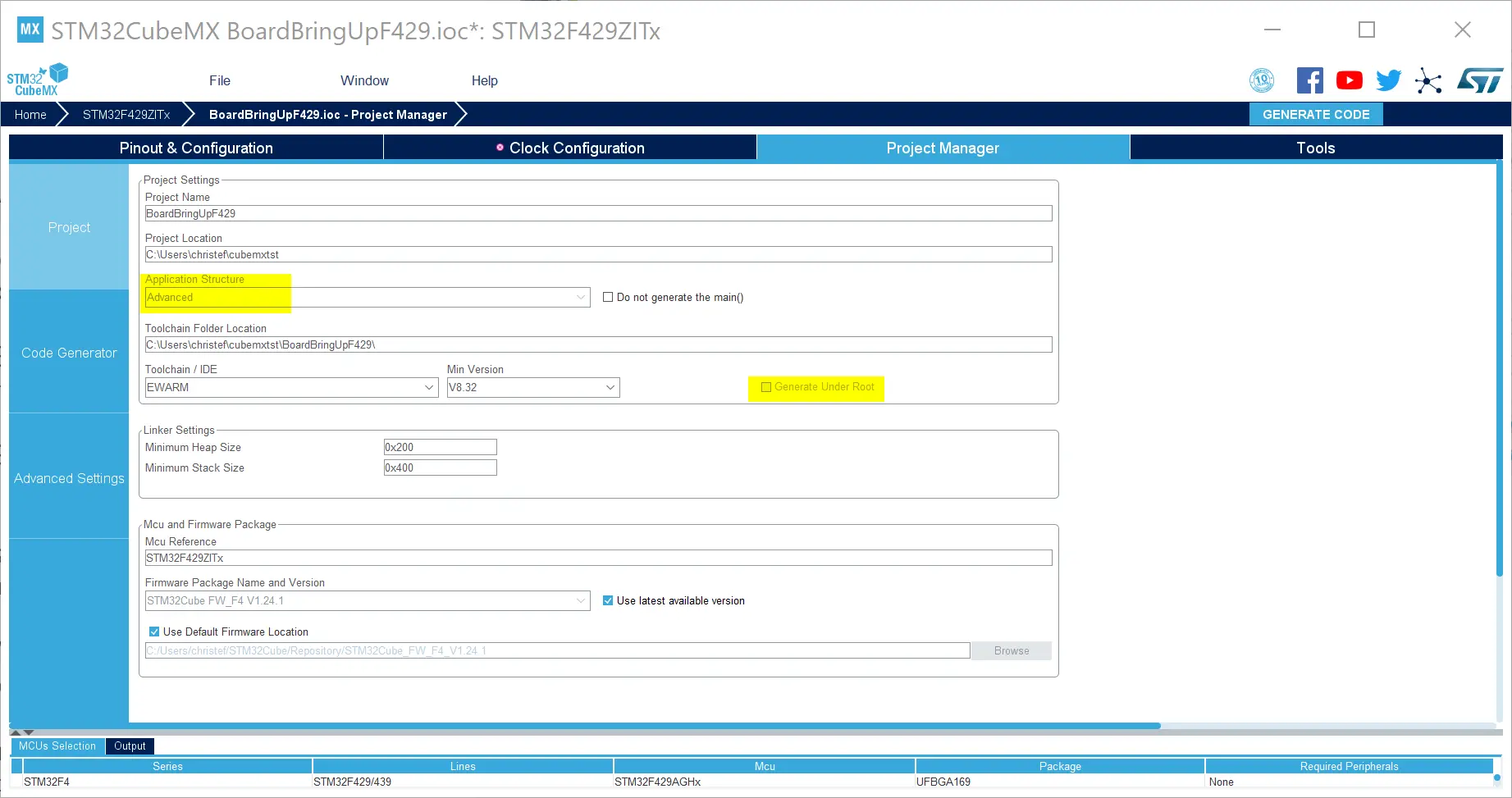 按下生成代码按钮后,STM32CubeMX将为选定的中间件、实用程序、驱动程序、工具链等生成代码。