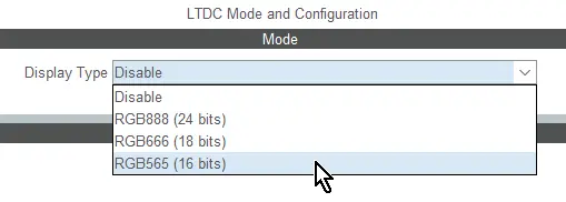 启用LTDC后,并行RGB (LTDC) 选项将在TouchGFX Generator的显示部分变得可用。