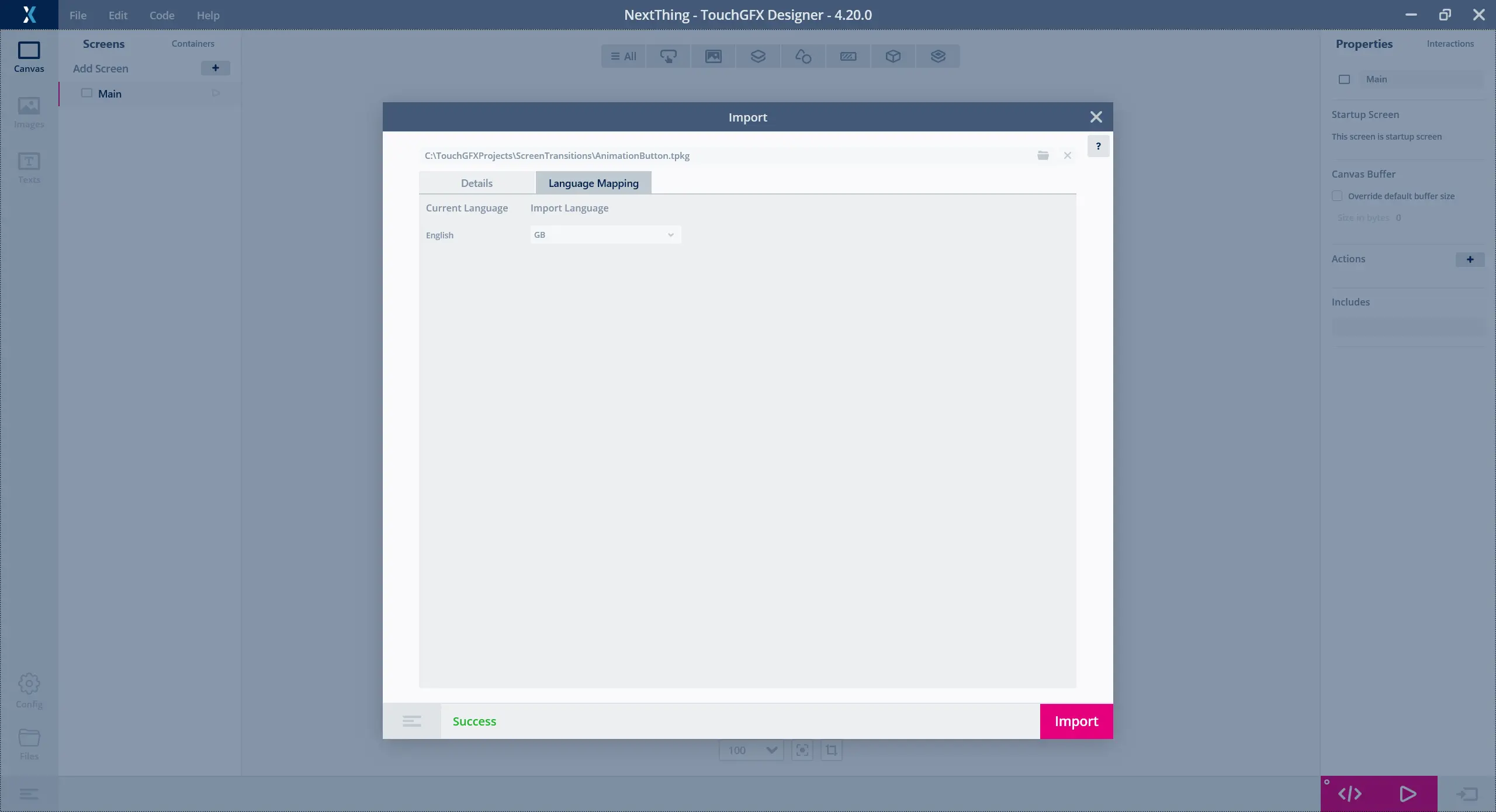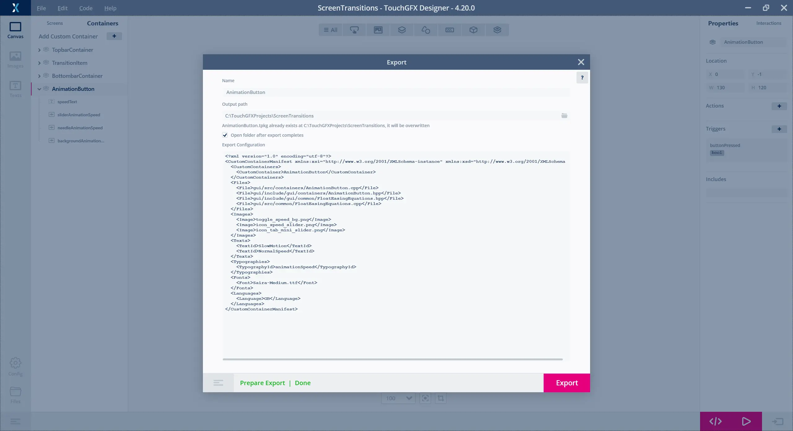 TouchGFX Designer 支持导入和导出自定义容器。 该功能可实现项目之间的共享和重用功能。