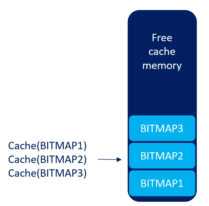 - 分配下一张位图时,会压缩缓存并在顶部进行分配: