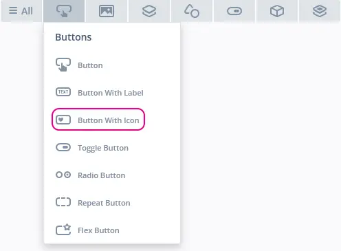 带图标的按钮可以在TouchGFX Designer中的“按钮”控件组中找到。