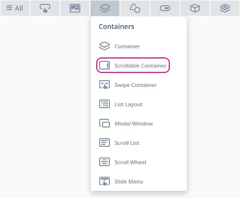 可滚动容器位于TouchGFX Designer中的容器控件组中。