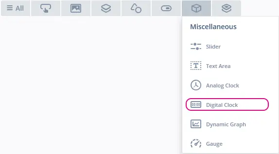 数字时钟位于TouchGFX Designer中的Miscellaneous控件组中。