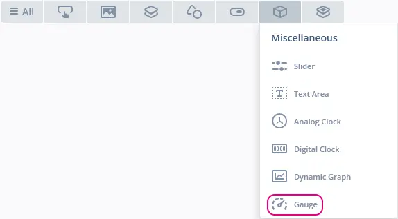 仪表位于TouchGFX Designer中的Miscellaneous控件组中。