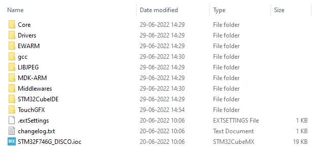 Middlewares | 任何已启用中间件的源代码或头文件和库。 含TouchGFX | 是 |