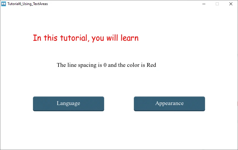 現在如果您執行應用程式並按下「Appearance」(外觀)按鈕,就可發現行距值及名稱色彩依據descriptionTextArea的外觀進行變更。