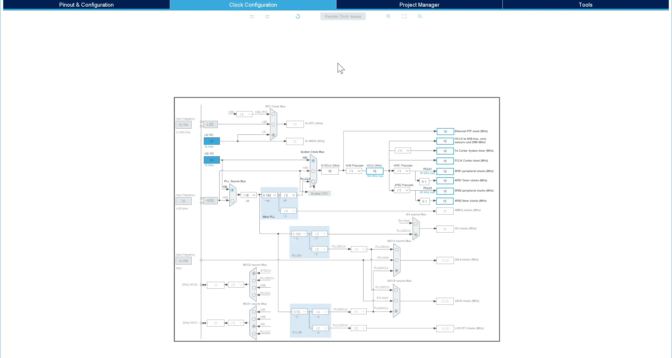 現在,我們將逐步調整專案時脈配置,以獲取所需的MCU頻率。 然後,我們將討論如何測量內部快閃記憶體的讀取速度。