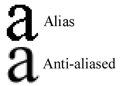 當像素密度過低時,可能產生階梯效應。 在應用中使用反鋸齒技術可使圖像中的這些階梯邊緣變得平滑。 可以看到,前兩個藍色圓圈顯示出階梯效應,這是因為像素密度不允許顯示器顯示足夠多的像素,以致沒有足夠高的色域來實現足夠高的反鋸齒效果。