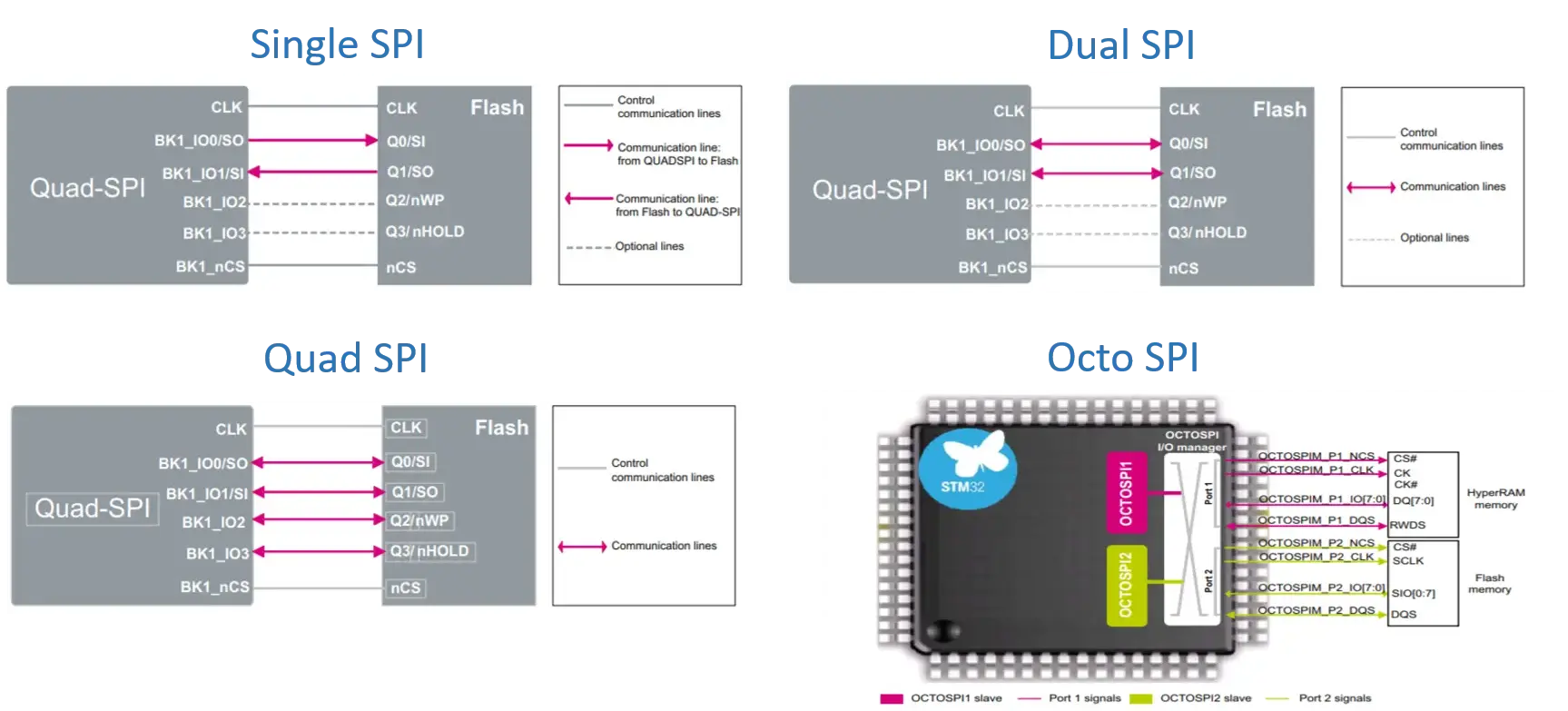 下面是根據資料線數量列出的不同SPI記憶體總覽: