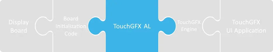 位於TouchGFX應用程式中的TouchGFX抽象層(AL)是軟體元件,位於初啟用開發板階段(Board Bring-Up phase)所開發的開發板初始化程式碼(Board Initialization Code)與TouchGFX引擎之間。 其主要任務是將引擎與底層硬體和作業系統相結合。 這是藉由將底層硬體及作業系統抽象化來達成,因此引擎便可對AL作一致的處理。
