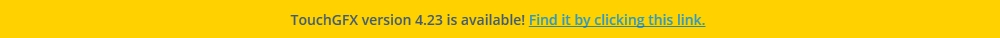 此橫幅用於告知使用者各項重要更新訊息,例如新的TouchGFX版本。 若要關閉橫幅,請按下橫幅右側的X按鈕。 橫幅將不再顯示已關閉的更新訊息。