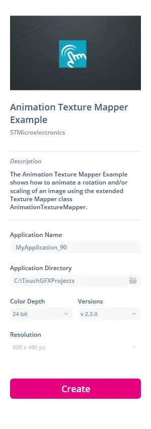 按下Create(建立)按鈕,依據選定範例及TBS建立新專案,並使用以上設定。