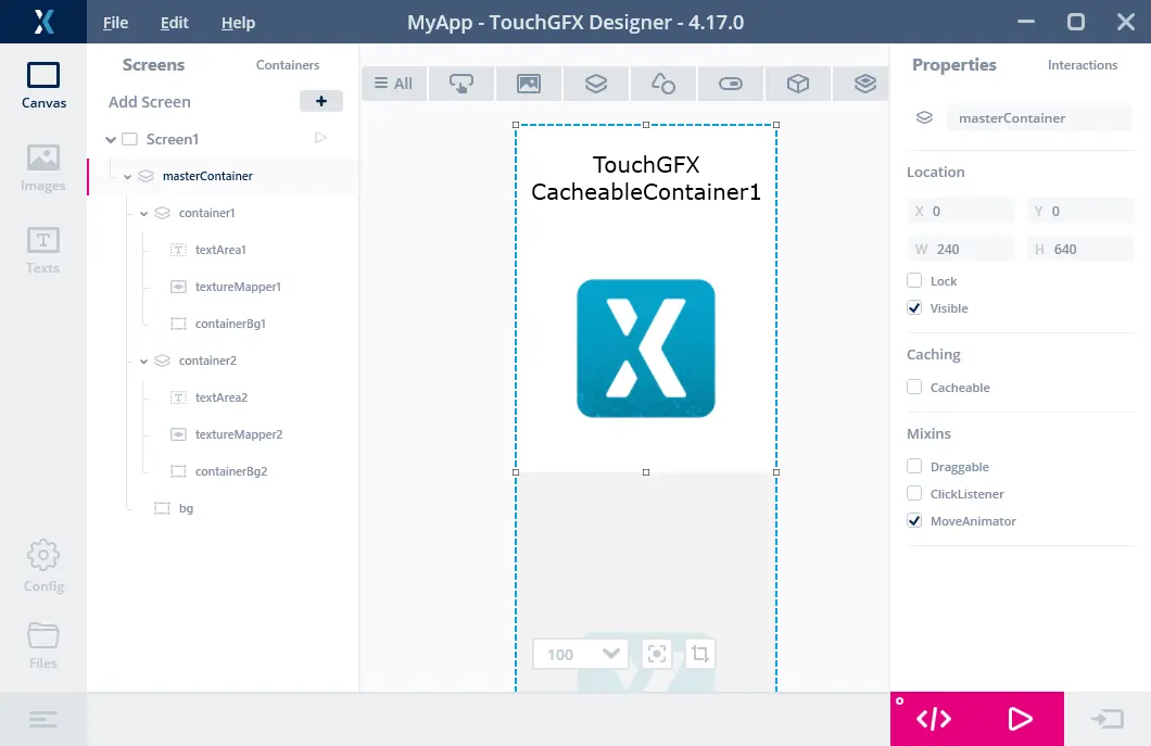 。 通過在TouchGFX Designer中將容器宣告為移動動畫器,它將能夠接收應用標記並隨時間流逝形成動畫,在這段時間裡可以測量性能。
