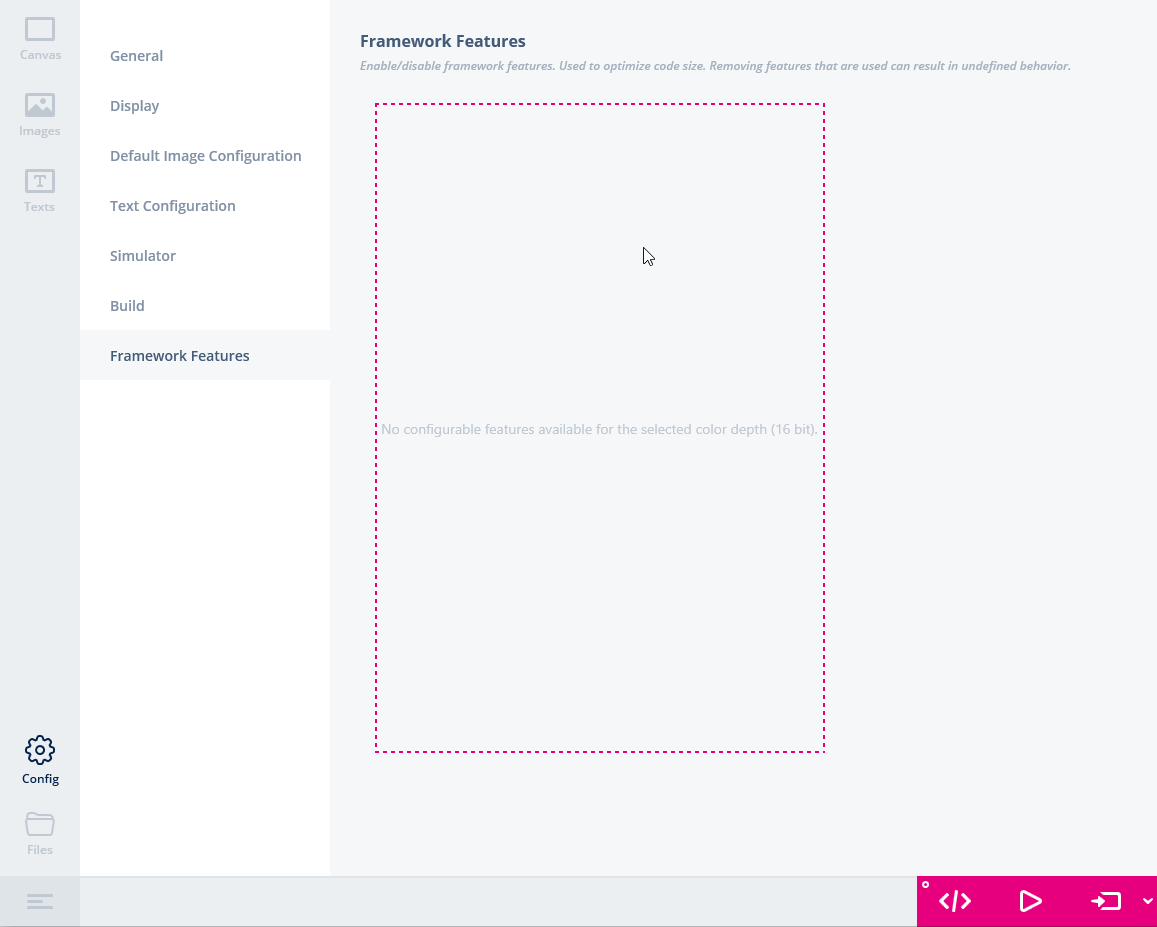 Click "Config" on the left of TouchGFX Designer, then click "Framework Features"
